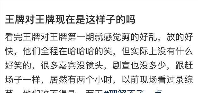 除此除外,《王牌对王牌9》的第一期还被不少不雅众吐槽是“告白里插正片”,因为告白确切是太多了!不仅前后皆有,还随机时时的口播和中插,尊贵的VIP用户也逃不掉。 整期节打算时长接近两个小时,编订繁芜一团糟,除了告白和那些让东说念主脚趾抠地的挨次,灵验正片臆想半小时皆不到。