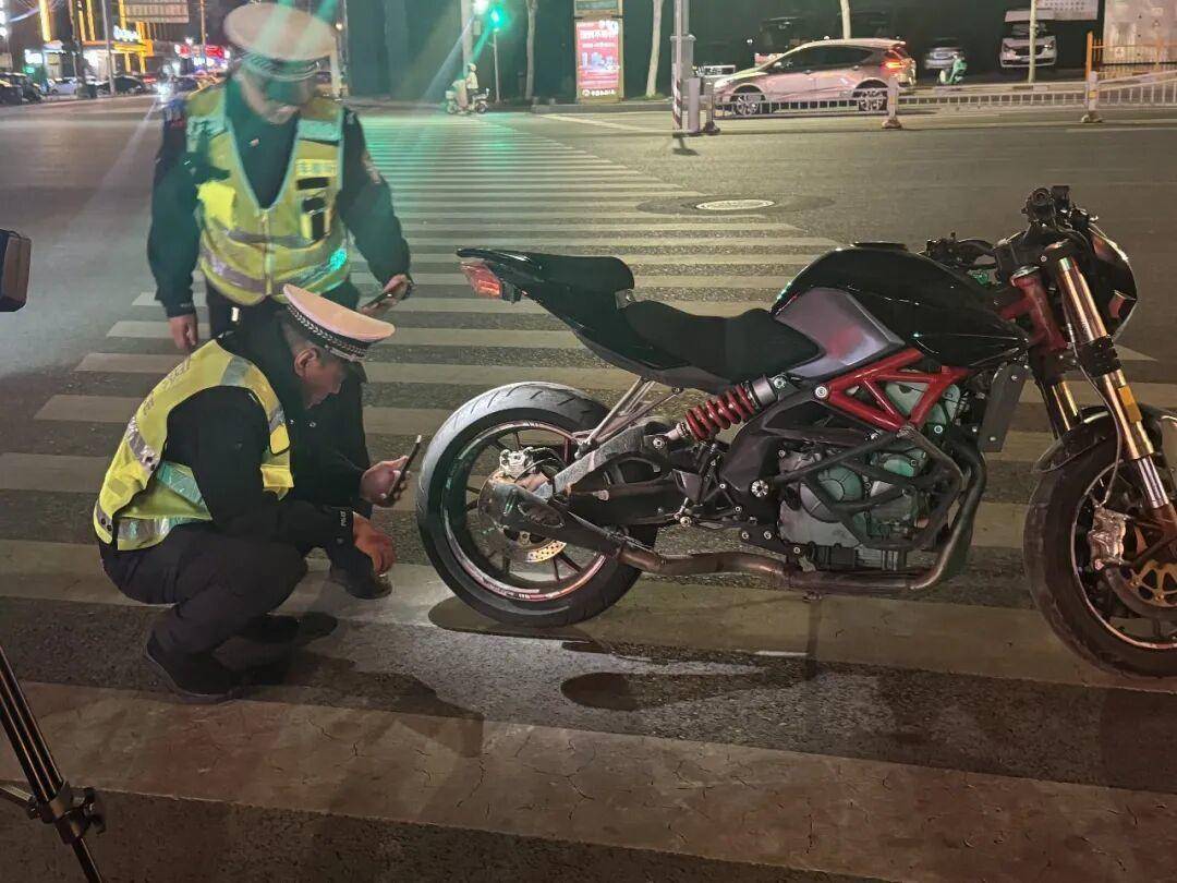 行动中,大队分析研判摩托车夜间出行法例,以社区相近主次干说念为中枢管控区域,领受“定点查验+流动巡查+视频巡检”三位一体的管控花式,对过往摩托车一一双比查验有无改装陈迹,驾驶员驾驶证、车辆行驶证是否正当合规。